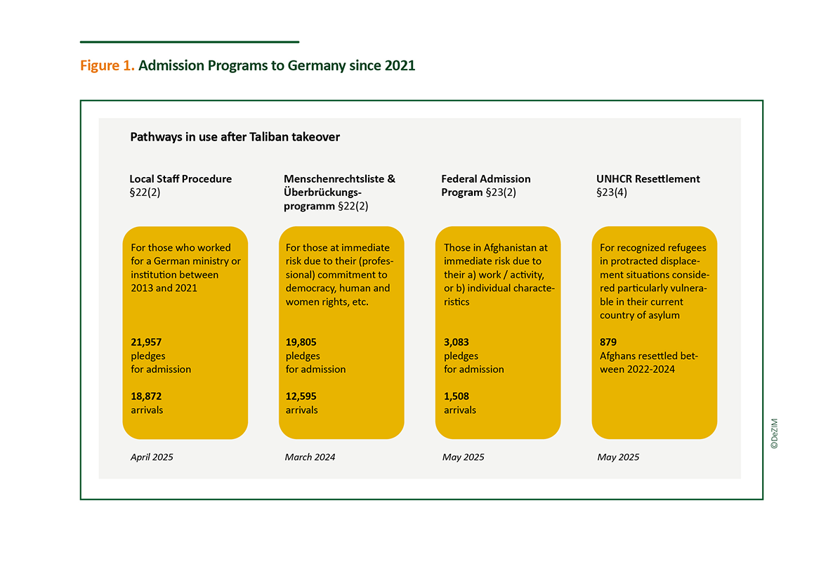 Mit nur ca. 1.500 Aufnahmen über das BAP, aber ähnlich vielen zusätzlich gegebenen Aufnahmezusagen, warten derzeit noch zwischen 1.500 und 2.400 Menschen in Pakistan und Iran mit einer deutschen Aufnahmezusage auf Visum und Flug nach Deutschland (DW, 2025). Das DeZIM Projekt zur Aufnahme afghanischer Ortskräfte und vulnerabler Menschen zeigt, welchen Gefahren sich die Menschen aussetzten und welche Hoffnungen sie mit einem Umzug nach Deutschland verbanden – diese werden enttäuscht und Menschen, für die Deutschland sich verantwortlich zeigen wollte, den Gefahren überlassen.